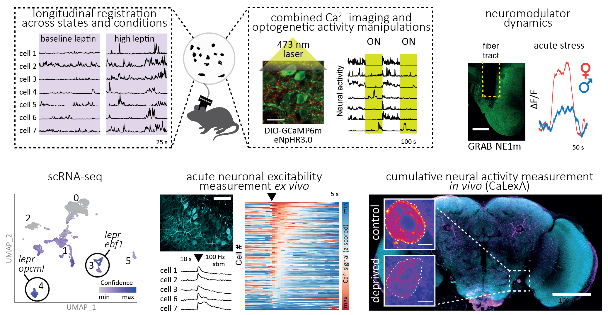 1. Investigation of the neuronal mechanisms that enable distinct hypothalamic populations to sense peripheral signals and balance competing needs accordingly.